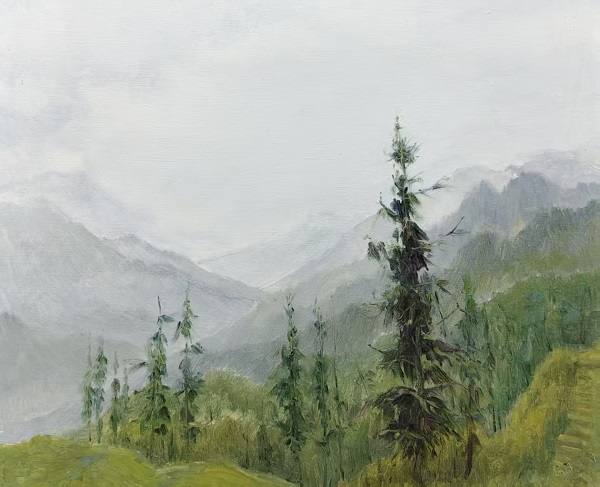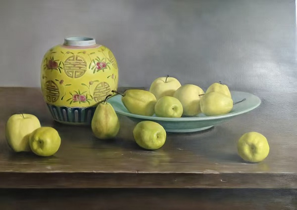 这种追求也体现在他的作品特色中。汪弢的油画擅长以细腻的笔触捕捉物象的本质特征,无论是人物肖像还是场景刻画,都能在写实的基调中融入主观情感的表达。其作品注重色彩的层次晕染与光影的微妙变化,画面既保持了油画媒介特有的厚重质感,又暗含东方美学的含蓄意蕴,形成了“形神兼备、虚实相生”的独特风格。从日常场景的温情记录到精神意象的视觉转化,他的作品总能以真挚的表达引发观者共鸣。